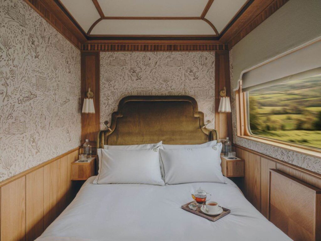 The Britannic Explorer launched in July 2025 as Britain’s first luxury sleeper train serving England and Wales, operating three-night journeys from London to Cornwall, the Lake District, and Wales. The train features 18 cabins, including three Grand Suites with double beds, personal butler service, and ensuite bathrooms. The interiors, designed by London-based studio Albion Nord, use natural materials like wood, stone, and wool to connect passengers to the landscapes passing outside their windows.